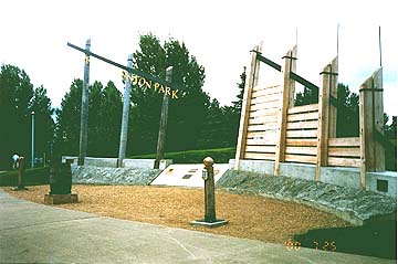 公園入り口。ここから歩いていくと駅のような建物が見えてくる。