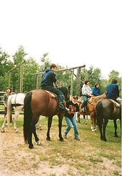 乗馬用の柵の中で馬に乗るのではなく、自然の中を馬で歩く乗馬。