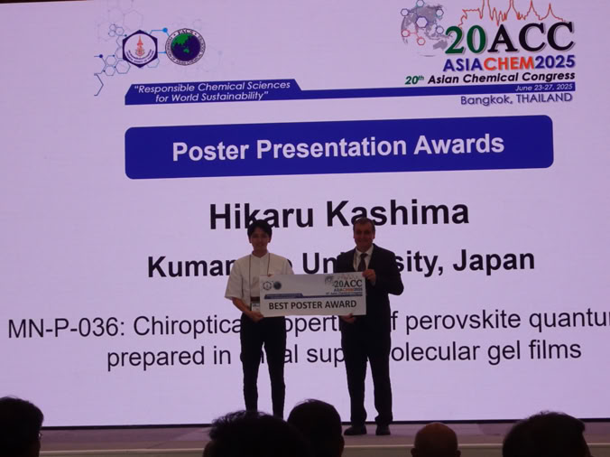 20th Asian Chemical Congress (20ACC)にて、加嶋輝くん(M2)がポスター賞を受賞しました!