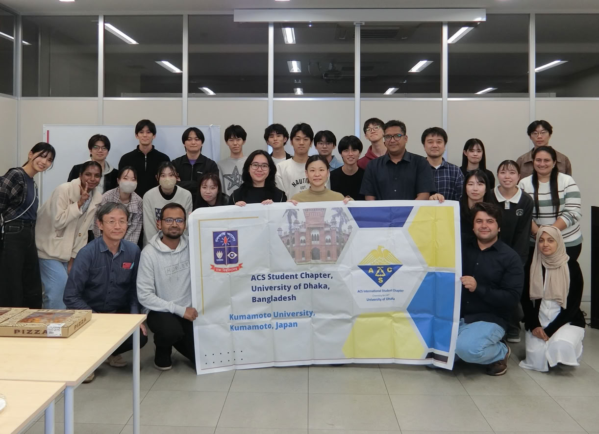 アーサヌラ科学技術大学(バングラデシュ)のSabrina先生とダッカ大学(バングラデシュ)のShahruzzaman先生にご講演を行ってもらいました。講演タイトルはそれぞれ「Removal of organic dyes from wastewater by kaolinate/poly(HEAA-co-MAPTS) composite as an adsorbent」と「ACS Student Chapter, University of Dhaka」です。とても興味深いご講演をしていただきありがとうございました。