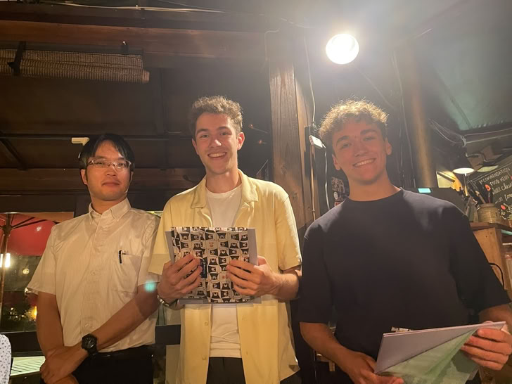 フランスから短期留学で本研究室に滞在していたCome LespinasseさんとMahe Dulongさん、そして長年にわたり研究にご尽力いただいた大石さんの送別会を開催しました。