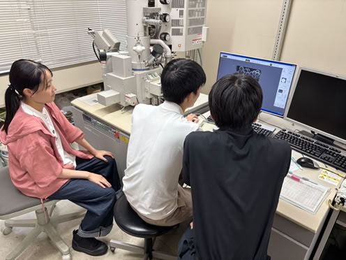本インターンシップでは、研究室所属学生の指導のもと、粒子の合成やIR測定、SEMによるサイズの観察、