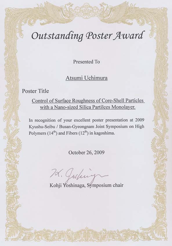 | 久保田幸代 | 制御可能かつ特異な界面ラフネスを有するコア-シェル美粒子の簡便な作製法 |