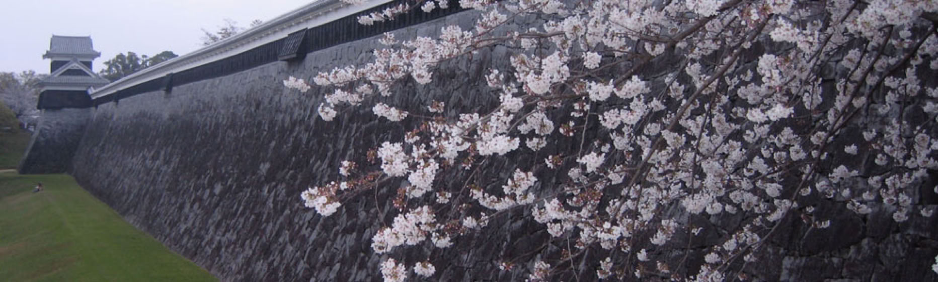 Sakura blossom at stone wall